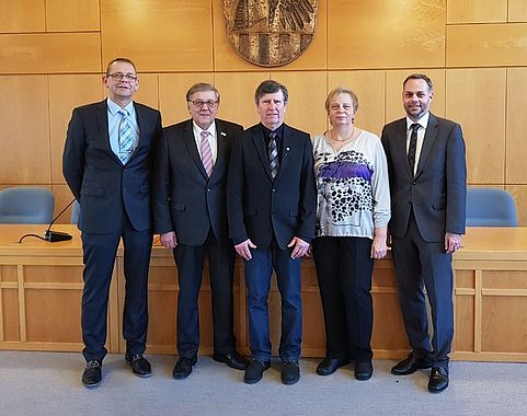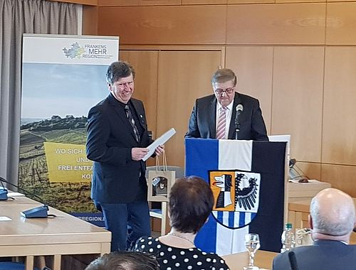 In Anerkennung seiner großen Verdienste im Ehrenamt überreichte Landrat Helmut Weiß Karl-Heinz Eberlein die Ehrennadel.