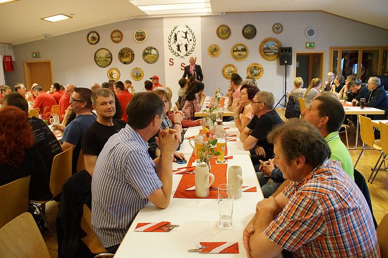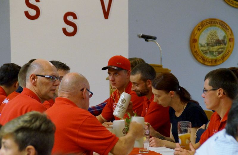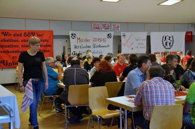 Selbstverständlich muss so ein Ereignis auch gebührend gefeiert werden. SSV Vorsitzender Jürgen Hoffmann konnte am 18.06.2016 rund 130 Gäste begrüßen. Viele Ehrengäste, darunter Landrat Helmut Weiß, 1. Bürgermeister Markus Heindel, 2. Bürgermeisterin Renate Laudenbach, Gruppenspielleiter Wolfgang Stocker vom Bayerischen Fußballverband und Schiedrichter Obmann Holger Hoffmann ließen es sich nicht nehmen bei dem historischen Ereignis dabei zusein.