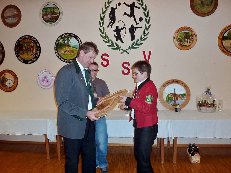 Ude Stadlinger holte sich mit einem 225,7 Teiler zum dritten Mal den Titel. Ihr zur Seite stehen als erster Ritter Rosemarie Danner (249,6 Teiler) und als zweiter Ritter die letztjährige Königin Liane Wellhöfer (250,8 Teiler).