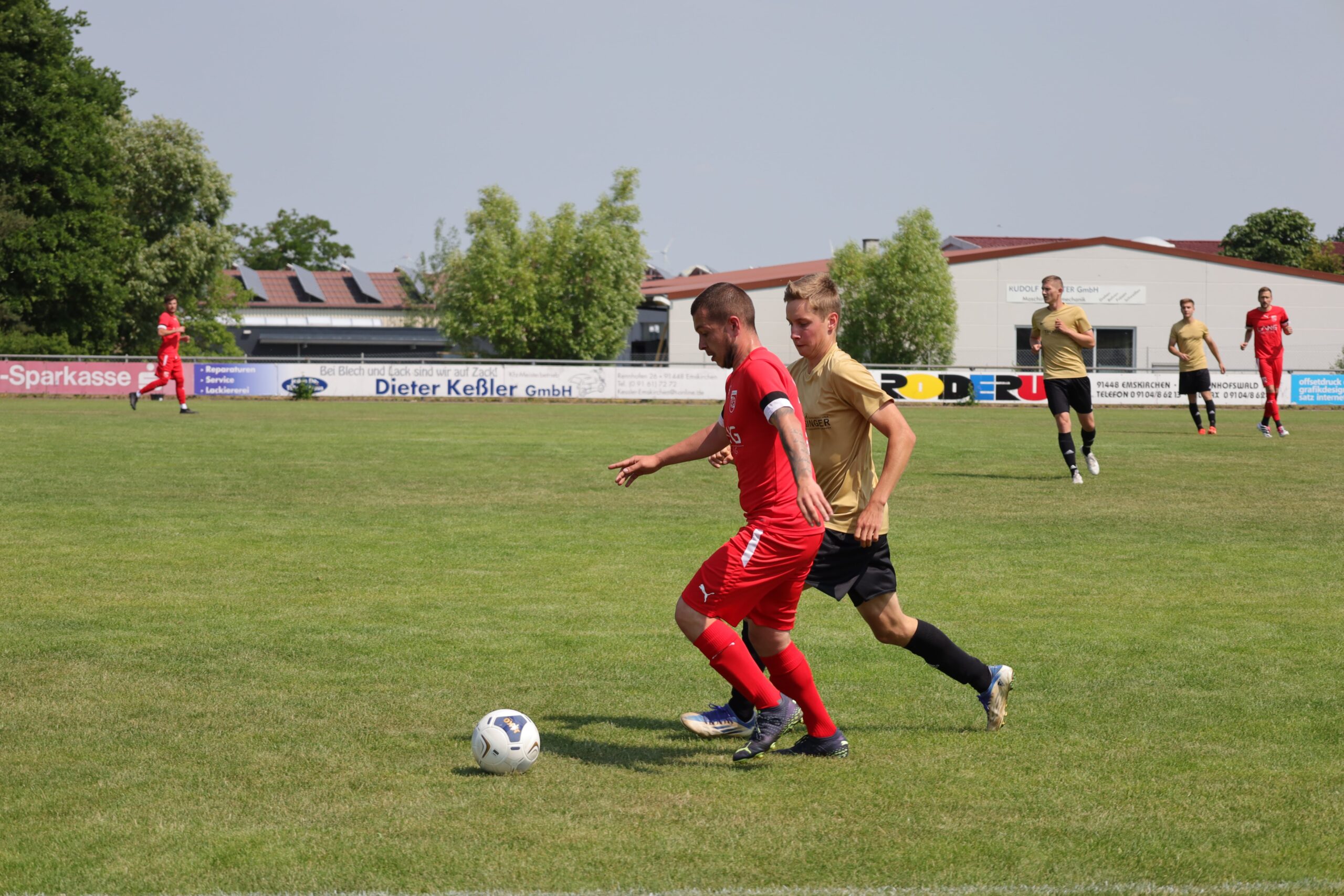 Auch in der zweiten Halbzeit hatte der FSV Stadeln U23 ll die ersten Torchancen. Aus der Drehung versuchte sich Florian Kauerauf mit einem satten Schuss, verzog diesen aber etwas, sodass dieser etwa einen Meter neben dem Tor landete. Danach war es wieder der sehr agile Steinbacher, dessen Abschluss jedoch zu unplatziert war. Im Gegenzug mal wieder eine Möglichkeit für unseren SSV, doch der Schuss von Domi Stoll ging weiter über das Tor. Nun konnte auch Thomas Meyer eine Chance verbuchen, doch auch hier konnte der FSV-Torhüter parieren. In der 58. Minute fiel dann die Führung für den FSV Stadeln U23 II. Eine Ungenauigkeit in unserer SSV-Abwehr wurde von Sebastian Steinbacher ausgenutzt und er konnte seinen FSV in Führung bringen. Vorangegangen war jedoch eine starke Parade von unseren Tobi, doch im nachsetzen war Steinbacher dann erfolgreich. Die nächste Möglichkeit hatte der eingewechselte Daniel Lorenz, doch auch diesen Schuss konnte Tobi super parieren. Man merkte leider seitens des SSV deutlich an, dass nach dem Führungstreffer des FSV der Wille und ehrgeizig etwas abhandengekommen war. Eine viertel Stunde vor Schluss noch ein Aufbäumen unseres SSV: Basti Stoll dribbelte sich durch und schickte den eingewechselten Sturm-Oldie Gerhard Lawrenz durch die Gasse – doch sein Schuss konnte der FSV-Torhüter zur Ecke lenken. Nach der Ecke fast der Ausgleich! Timo Ullrich kam per Kopf an den Ball und legte quer auf Gerhard, doch dieser hatte zu viel Rücklage und bugsierte den Ball leider etwas über das Tor. In der 81. Minute dann der Knockout für den SSV – im Getümmel am 5er reagierte Sebastian Spahn am schnellsten und beförderte das Leder per Kopf zum 3:1 und zum Klassenerhalt ins Tor. Die letzte Chance verbucgte Mark Duscher, doch sein Kopfball konnte der FSV-Torhüter gerade noch so parieren.